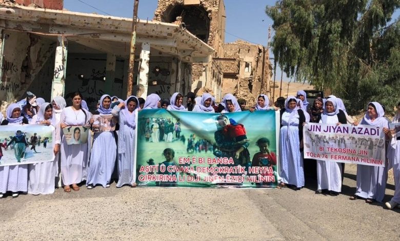 وأكد البيان أن النساء الإيزيديات تواصلن نضالهن منذ أكثر من عشر سنوات ضد داعش ولن تتخلين عن حقهن في المطالبة بالعدالة أو عن إصرارهن على المقاومة، مشيرةً إلى أن مصير آلاف النساء والأطفال ما يزال مجهولاً وأن ما وصفته بـ “الإبادة البيضاء” مستمر حتى اليوم.