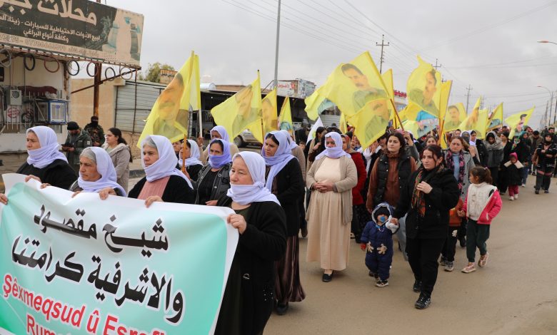 Daxuyanî bi dirûşmeyên “Bijî Berxwedana Rojava”, “Bijî Berxwedana Taxên Şêx Meqsûd û Eşrefiyê” bi dawî bû.